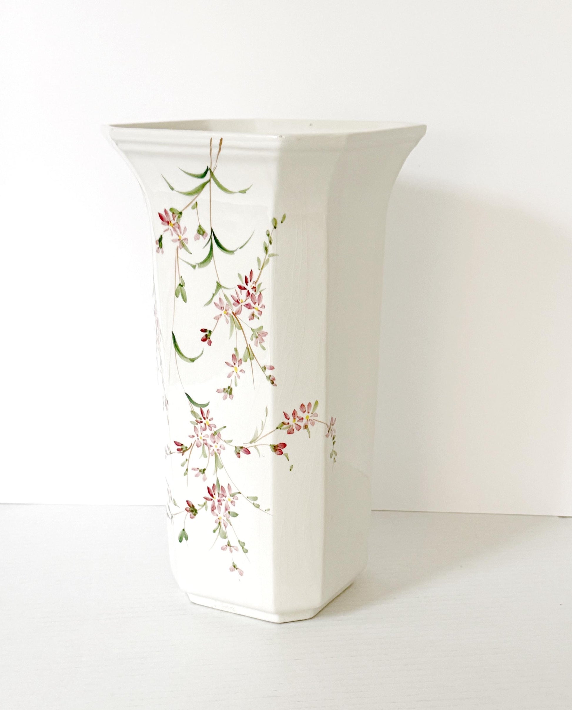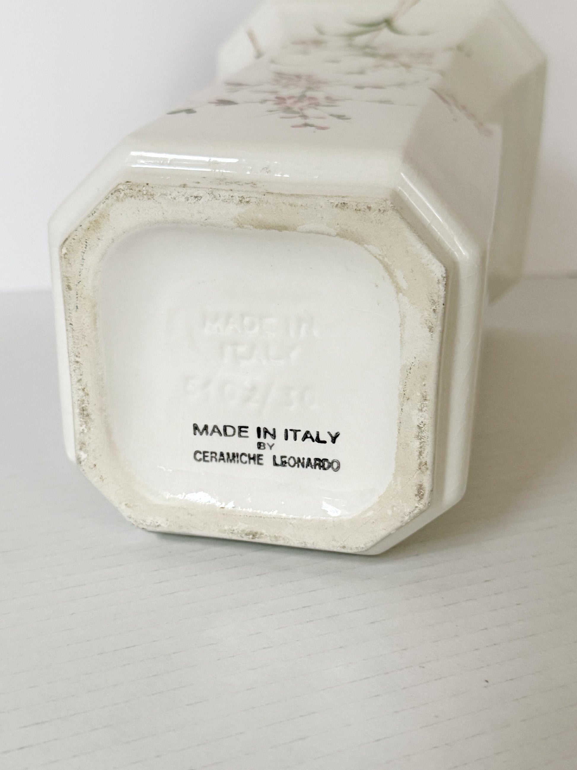 Floral handpainted white ceramic vase. Made in Italy and signed on the bottom.