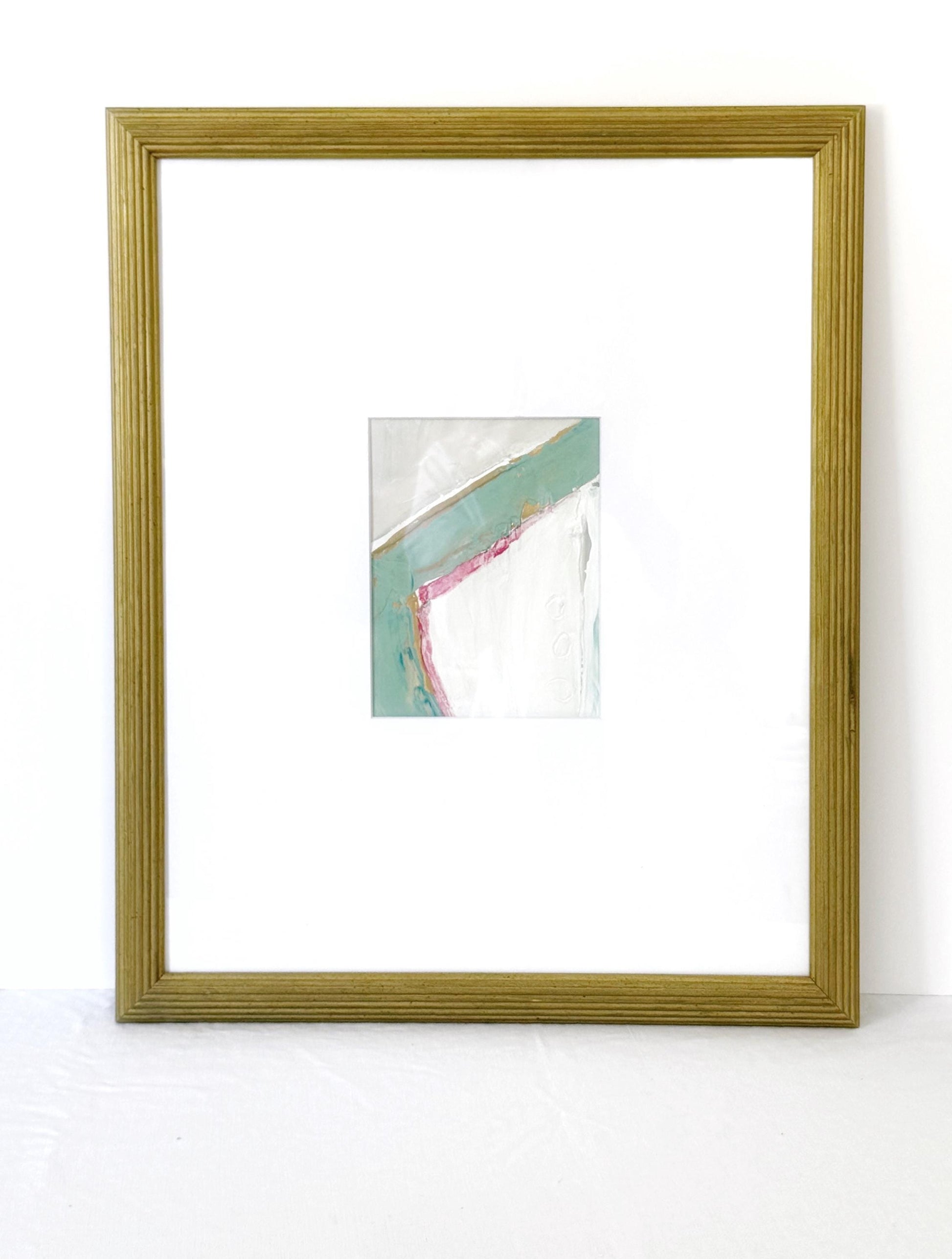 Original Abstract Mixed Media Painting on Canvas, Framed in Vintage Gold Leaf Frame, Neutral Artwork, Lavender, Taupe, Pastel