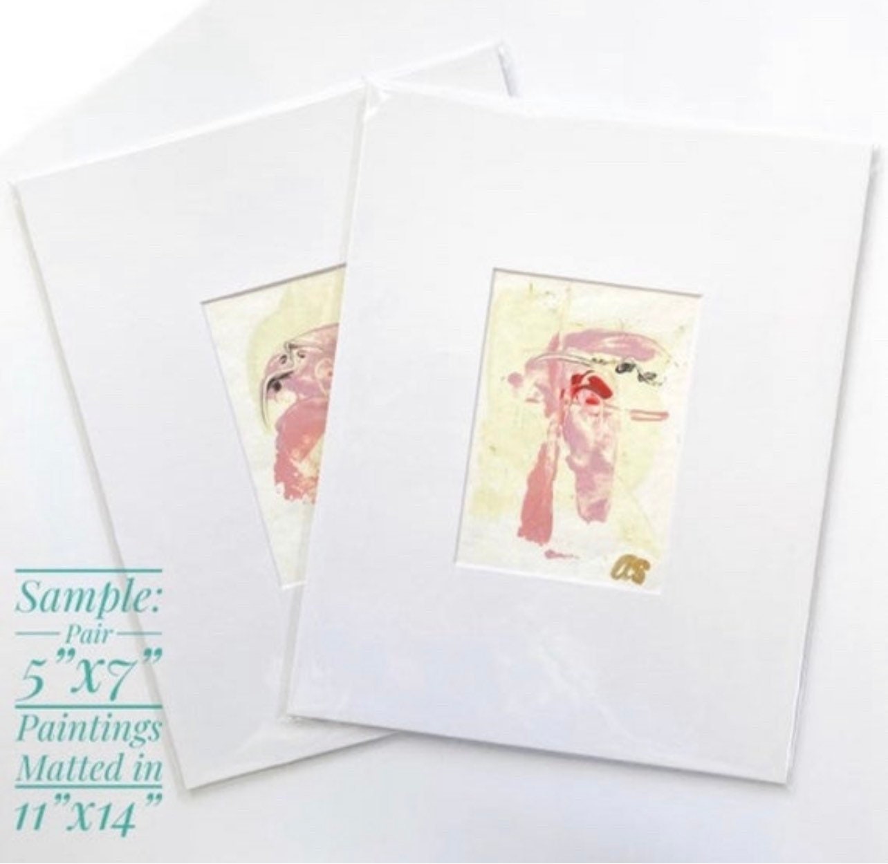 This listing is for an original abstract mixed-media painting (size 4”x6”), double matted in a white, bevel-cut core mat. This painting will arrive in a clear protective sleeve to protect the integrity of the artwork during transport and will be ready to insert into your 8”x10” frame of choice.