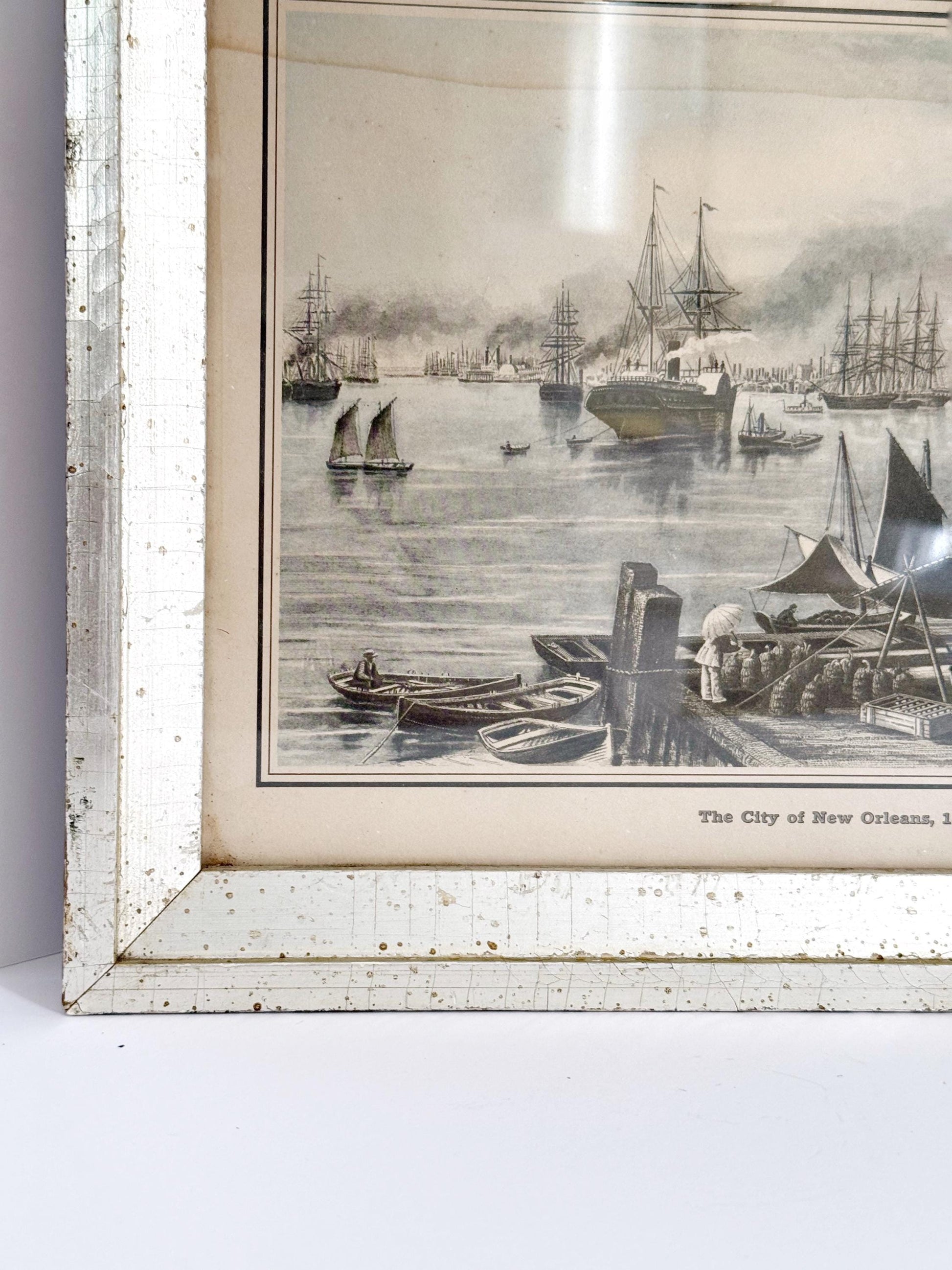 Vintage Framed New Orleans Landscape Print. Silver and Gold-leafed frame measures 8x10.